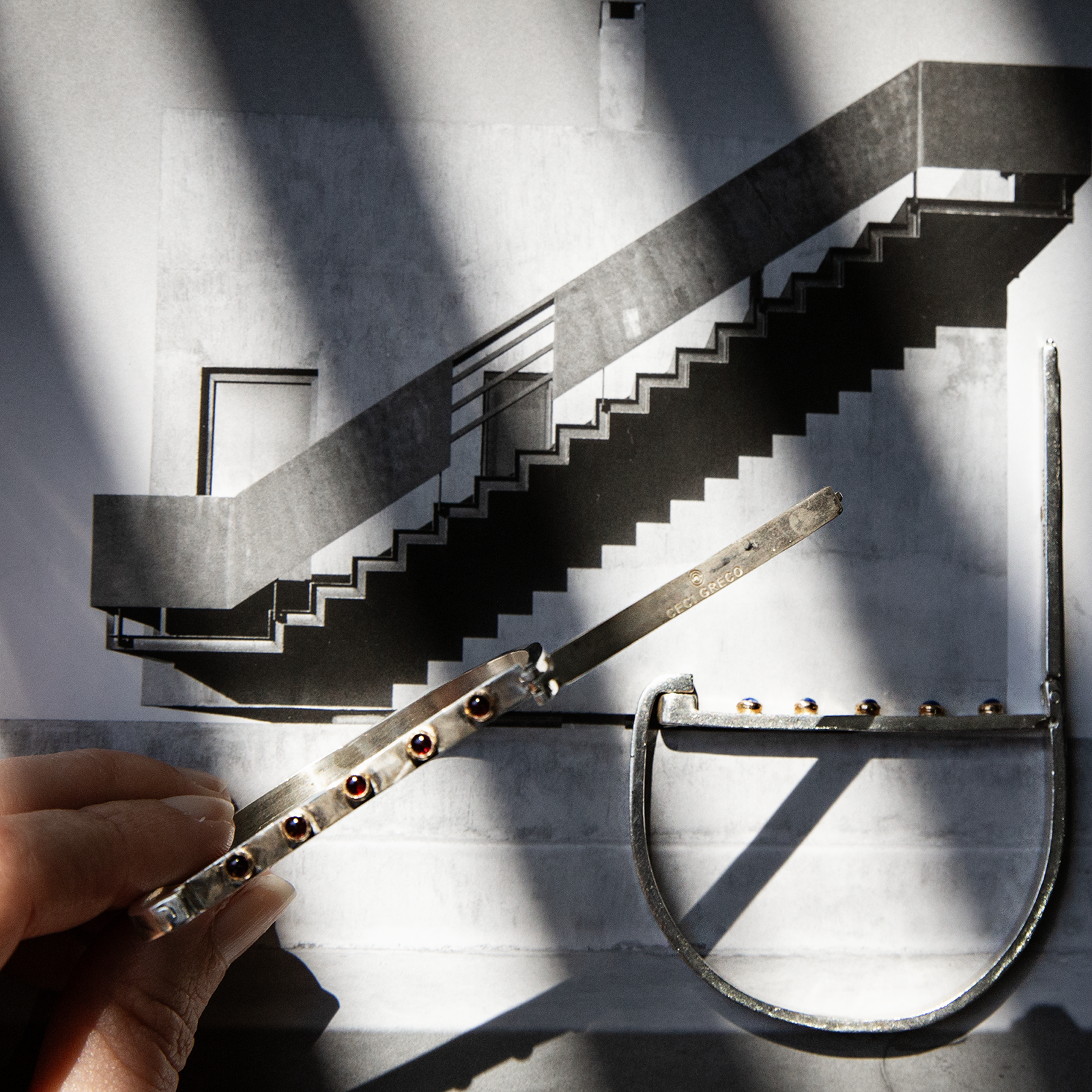 Our Introvert Tension Cuff is - like the name suggests - not incredibly forthcoming. It may seem a bit austere at first glance, but the glimmer of gems hidden inside discloses the truth of its playful complexity.