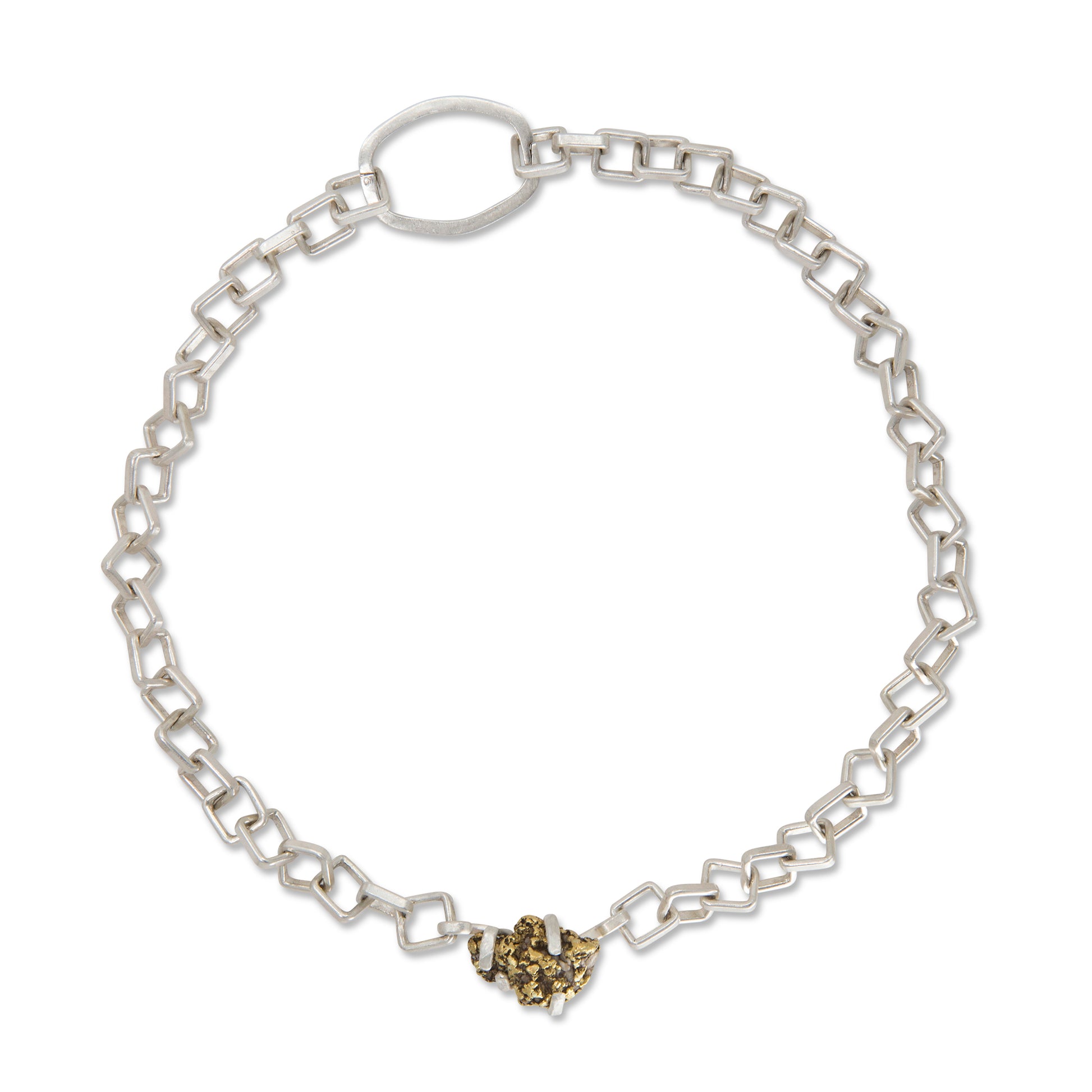 Handmade Recycled Sterling Silver Chain Necklace with Solid Gold Nugget