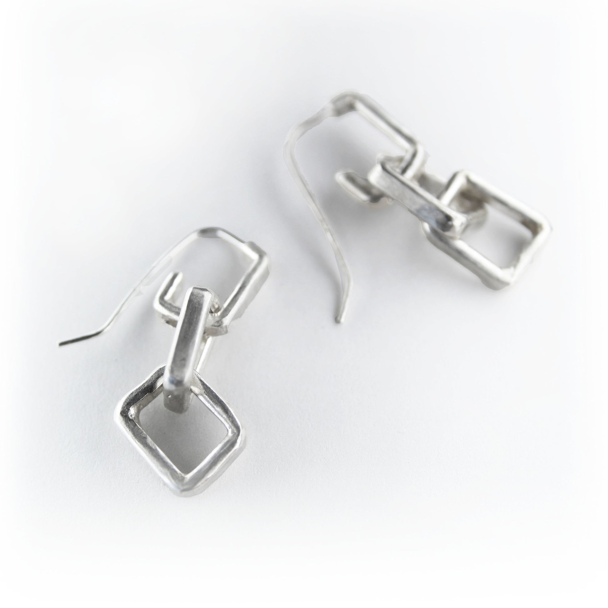 Hand fabricated in Los Angeles from recycled sterling silver, these simple, elevated drop earrings combine graceful movement with the brutalist aesthetic of our signature link.